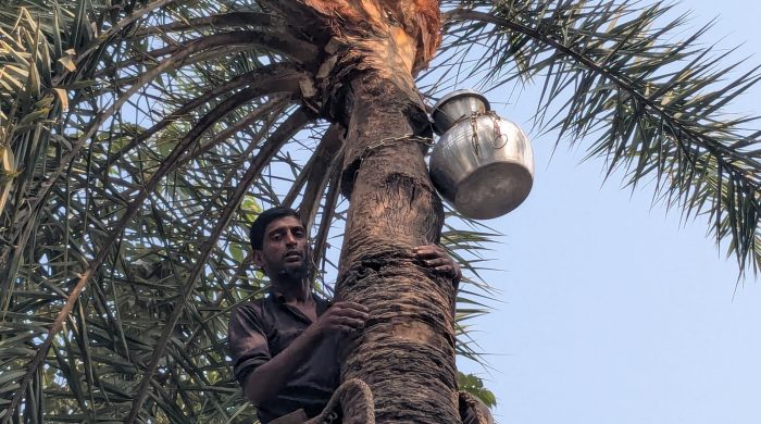 সিংগাইর উপজেলায় গারাদিয়া গ্রামে এমন চাঞ্চল্যকর ঘটনা ঘটেছে, গাছ থেকে রস সংগ্রহকারী জানান রাতের আঁধারে গাছ থেকে প্রতিনিয়ত রসের হাড়ি চুরি হওয়ার কারণে এই পদক্ষেপ নিয়েছে তারা তাদের কাছে জানতে বিস্তারিত